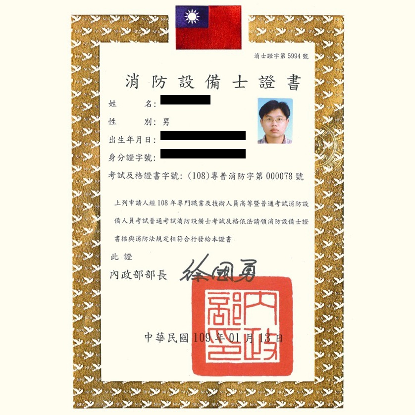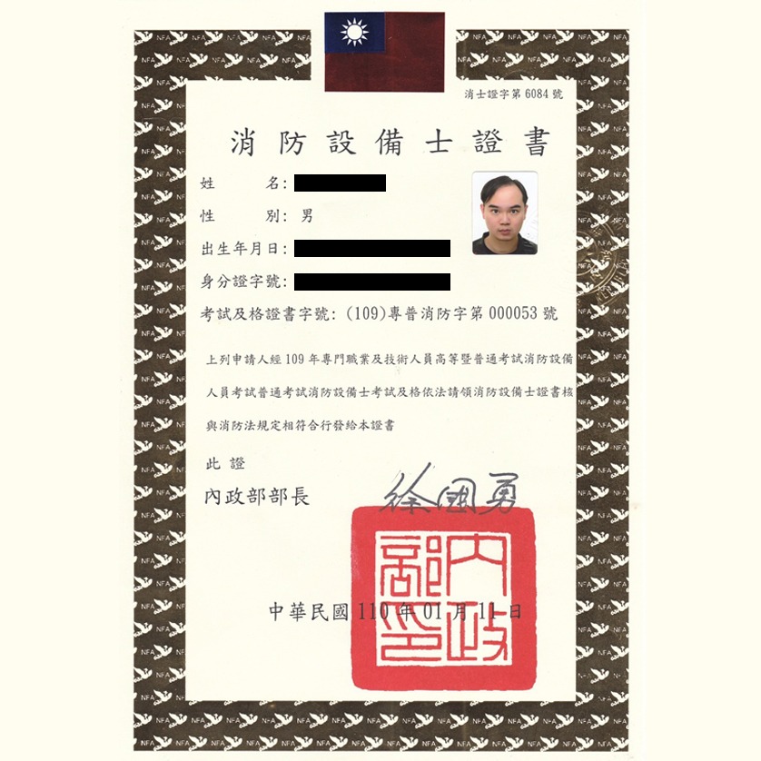 永育安消防的專業人員皆持有證照,可作為人力品管標準,